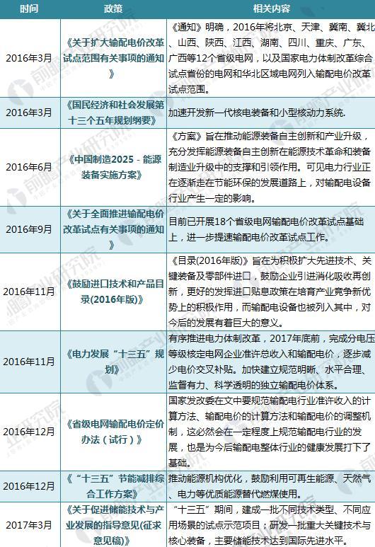 圖表3:2016年以來國家關(guān)于輸配電設(shè)備的政策匯總