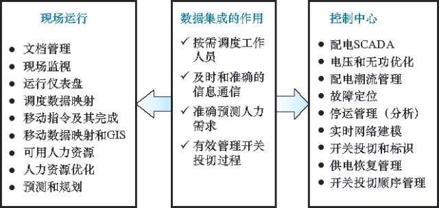 圖2是配電網(wǎng)運(yùn)行的一個(gè)簡單子集,從中可以明顯看出對(duì)于不同來源的數(shù)據(jù)進(jìn)行集成的需求。集成的作用在于: