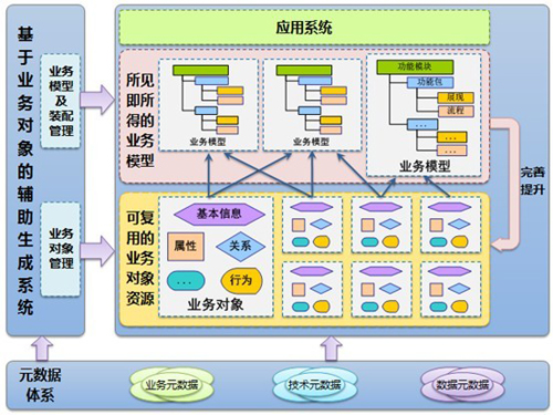 在基于業(yè)務(wù)對象的應(yīng)用系統(tǒng)建設(shè)過程中,“資源化”的思路與方法貫穿始終。一方面,在元數(shù)據(jù)體系的支撐下,業(yè)務(wù)對象通過元數(shù)據(jù)體系進行統(tǒng)一的組織和管理,使得用戶可以高效、便捷的復(fù)用,快速創(chuàng)建針對特定業(yè)務(wù)需要的功能;另一方面,隨著基于業(yè)務(wù)對象的應(yīng)用系統(tǒng)建設(shè)的不斷增多,業(yè)務(wù)對象會在數(shù)量、質(zhì)量上不斷積累和完善,使得在應(yīng)用系統(tǒng)的建設(shè)過程中可復(fù)用的資源也更為豐富,使得系統(tǒng)的建設(shè)更加規(guī)范、可擴展以及可管理。從而支持和促進整體業(yè)務(wù)體系在實際的業(yè)務(wù)過程中不斷的向前發(fā)展和動態(tài)演進,具有更長久的業(yè)務(wù)生命力。