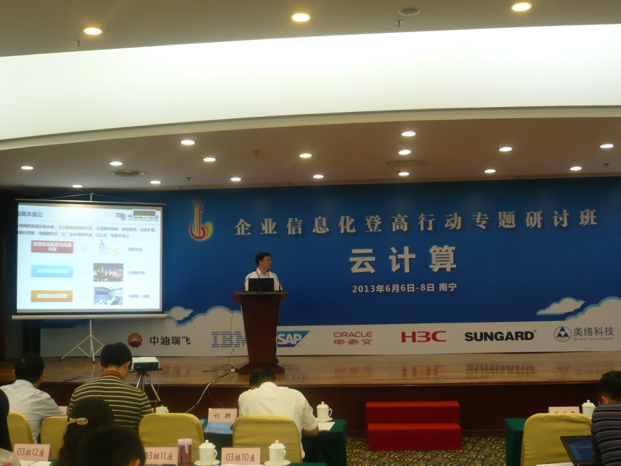 研討會(huì)上,云南云電同方科技有限公司云南分公司副總經(jīng)理徐兵元代表南方電網(wǎng)公司進(jìn)行先進(jìn)企業(yè)云計(jì)算建設(shè)成果匯報(bào)及建設(shè)經(jīng)驗(yàn)共享,由于南方電網(wǎng)公司云計(jì)算建設(shè)顯著,受到參會(huì)人員極度的關(guān)注,被國資委信息中心處長許丕盛評為2013年企業(yè)信息化登高行動(dòng)第13期(云計(jì)算)專題研討的唯一亮點(diǎn)企業(yè),徐兵元的匯報(bào)也被同行業(yè)的中國華電集團(tuán)公司CIO唐義良高度贊揚(yáng)。