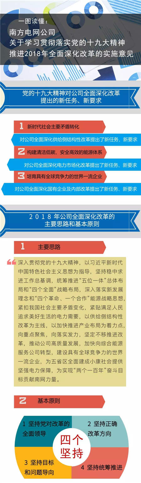日前,南方電網(wǎng)公司印發(fā)了《南方電網(wǎng)公司黨組關(guān)于學習貫徹落實黨的十九大精神推動全面從嚴治黨向縱深發(fā)展的意見》(南方電網(wǎng)黨〔2018〕1號)、《南方電網(wǎng)公司關(guān)于學習貫徹落實黨的十九大精神推進2018年全面深化改革的實施意見》(南方電網(wǎng)辦〔2018〕1號)兩份文件,這兩個“一號文”說了啥?一起來看看——