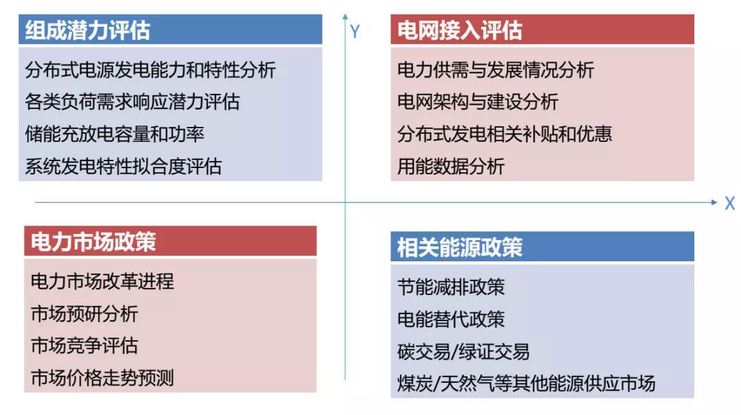 規(guī)劃因子是微電網(wǎng)選擇的約束模型,基于這個(gè)模型可以選擇比較優(yōu)質(zhì)的項(xiàng)目。規(guī)劃因子主要分為組成潛力評(píng)估、電網(wǎng)接入評(píng)估、電力市場(chǎng)政策和相關(guān)能源政策四部分。