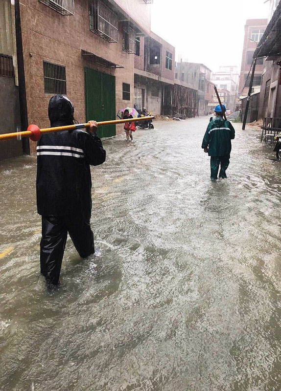 南方電網(wǎng)廣東汕頭供電局工作人員第一時間進入水浸嚴(yán)重地段,逐一排查設(shè)備隱患。