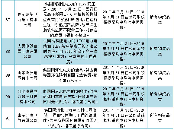 國家電網(wǎng)公司通報2017年9月供應(yīng)商不良行為處理情況