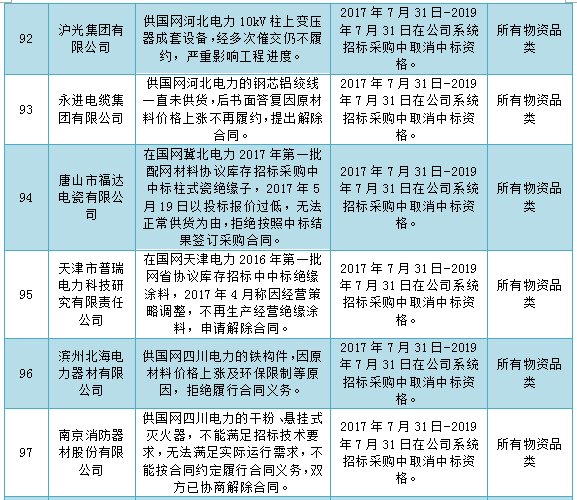 國(guó)家電網(wǎng)公司通報(bào)2017年9月供應(yīng)商不良行為處理情況