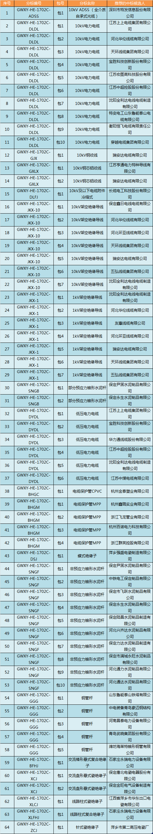 國網(wǎng)河北2017年第二次配網(wǎng)設(shè)備/線材協(xié)議庫存貨物招標(biāo)中標(biāo)候選人