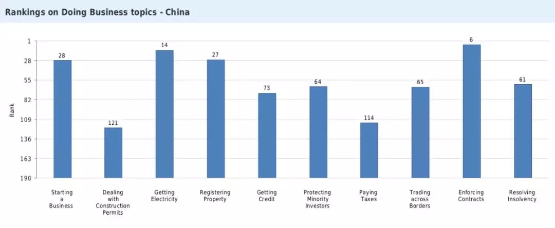 在去年和前年的報告中,中國的排名均為78名。今年,中國得分相比去年提升了8.64分,是營商環(huán)境改善最大的經(jīng)濟體之一。