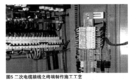 包括二次電纜就位工藝,二次電纜終端制作工藝,芯線整理、布置的詳細(xì)方法以及二次屯纜固定的施工工藝,如圖5所示。