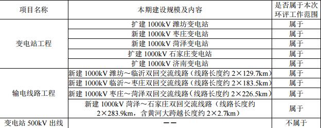 本工程建設(shè)內(nèi)容包括:新建 1000kV 棗莊、菏澤變電站,擴(kuò)建 1000kV 濰坊、石家莊、濟(jì)南變電站,新建濰坊~臨沂~棗莊~菏澤~石家莊雙回 1000kV 交流輸電線路(以下簡稱“濰坊~臨沂~棗莊~菏澤~石家莊特高壓交流線路”)約 2×823.6km(含黃河大跨越 2×2.7km)。