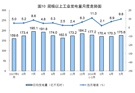5月份,規(guī)模以上工業(yè)原煤、原油、天然氣生產(chǎn)基本平穩(wěn),原油加工量增速有所放緩,電力生產(chǎn)繼續(xù)加快。