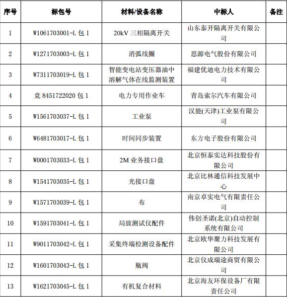國網(wǎng)北京市電力公司 2017 年第七批競爭性談判中標人名單(招標編號:W1061703001-L 等)