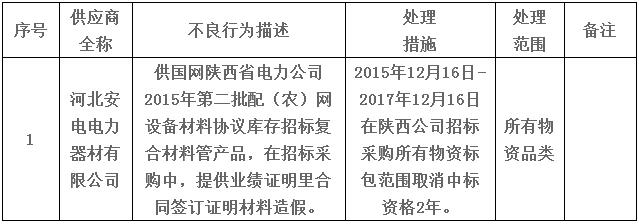 關(guān)于國(guó)網(wǎng)陜西省電力公司供應(yīng)商不良行為處理情況的通報(bào)